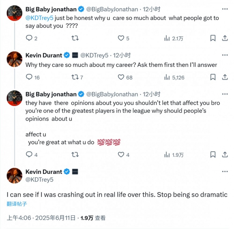 6月11日訊 近日,杜蘭特在社媒和網(wǎng)友互動(dòng)。