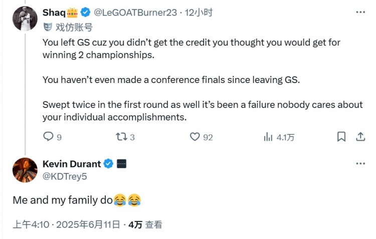 6月11日訊 近日,杜蘭特在社媒和網(wǎng)友互動。