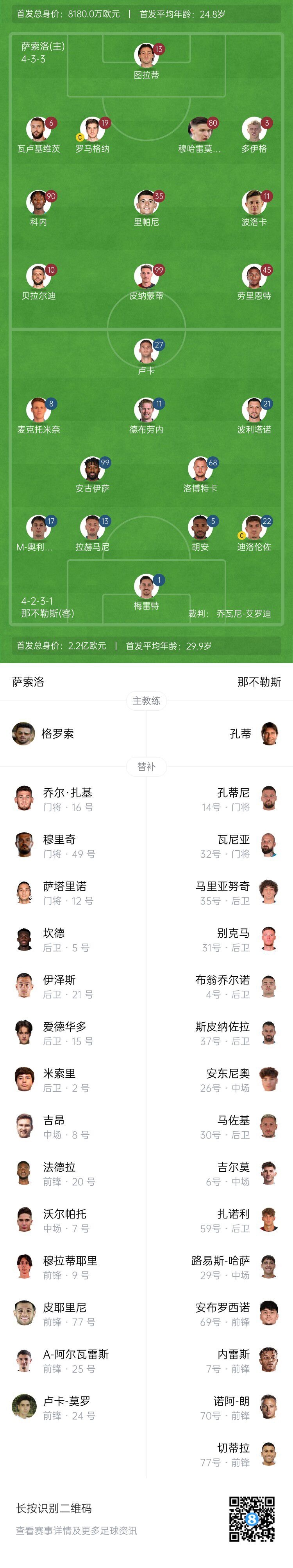 8月24日訊 00:30意甲聯(lián)賽第一輪,那不勒斯客場(chǎng)對(duì)陣薩索洛。賽前,雙方公布了本場(chǎng)比賽的首發(fā)陣容。