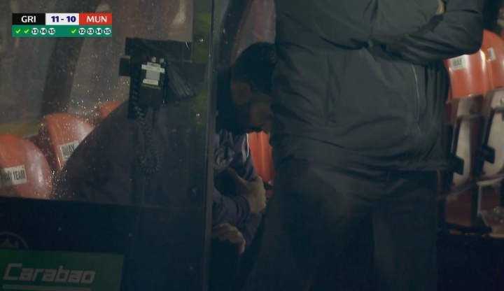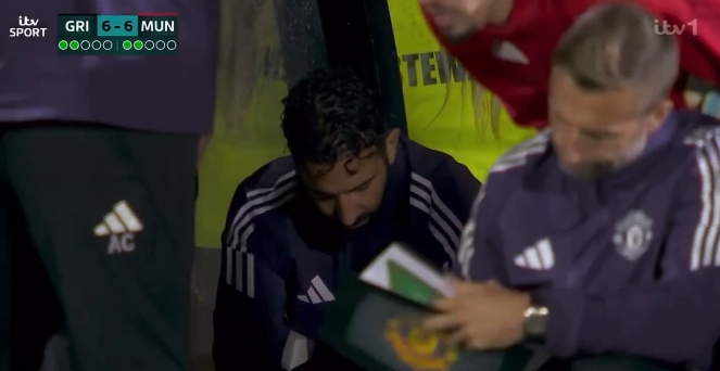 點球大戰(zhàn)進行中時,鏡頭給到阿莫林,阿莫林坐在教練席上,他低著頭沒有看向場上。