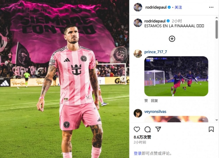 8月28日訊 阿根廷中場(chǎng)德保羅更新社媒,慶祝邁阿密國(guó)際晉級(jí)聯(lián)盟杯決賽。