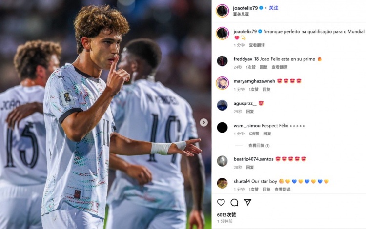 9月7日訊 葡萄牙在本輪世預(yù)賽客場(chǎng)5-0大勝亞美尼亞,菲利克斯雙響建功。