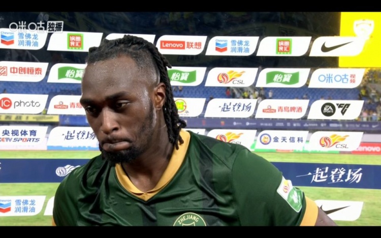 9月13日訊 中超第24輪,浙江隊(duì)2-0客勝青島西海岸。賽后,浙江隊(duì)球員奧烏蘇接受采訪。