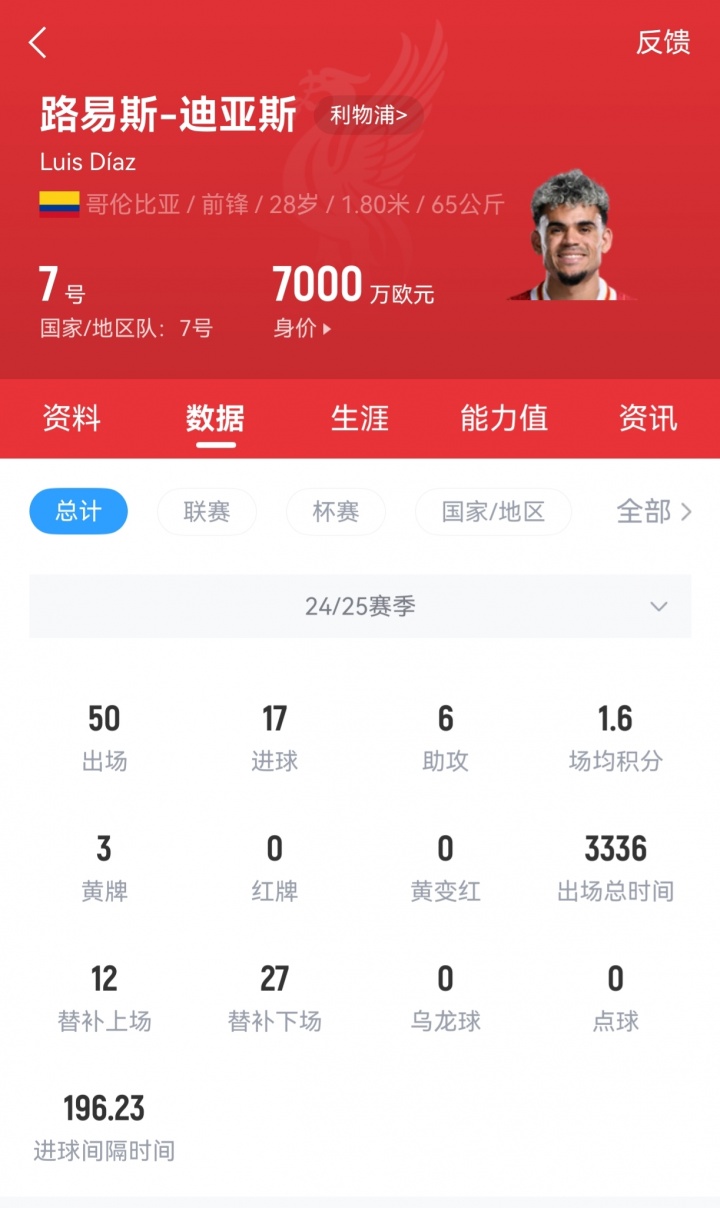 目前迪亞斯在利物浦還有兩年合同,他的周薪約為14萬鎊。