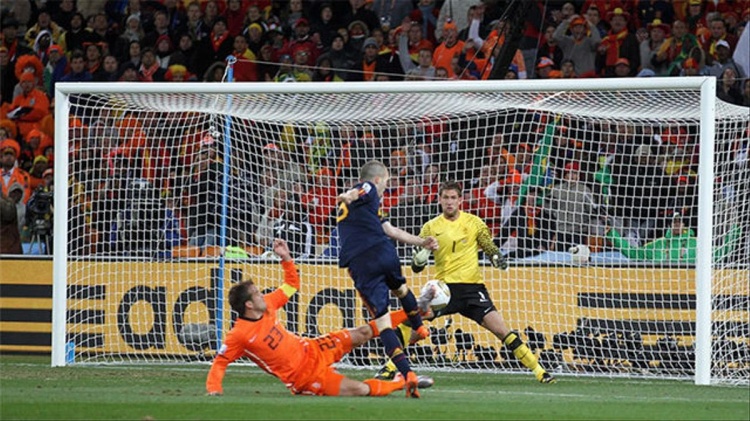 2010年7月11日,西班牙在世界杯決賽中1-0擊敗荷蘭,奪得隊(duì)史首座世界杯冠軍,伊涅斯塔打入全場(chǎng)唯一進(jìn)球,并被評(píng)為最佳球員。