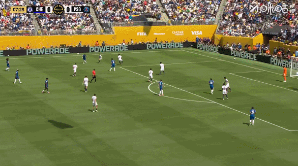 07月14日訊 2025年世俱杯決賽,切爾西vs巴黎圣日耳曼,比賽第9分鐘,帕爾默兜射突施冷箭,皮球擦著立柱而出。