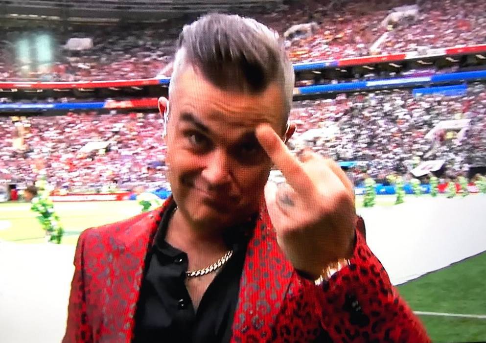 這不是羅比-威廉姆斯第一次參加大型賽事的開場表演,在2018年俄羅斯世界杯他曾參加開幕演出,并留下了豎中指的名場面。
