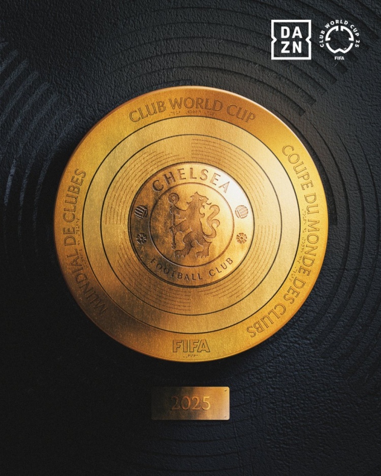 在世俱杯決賽結(jié)束之后,切爾西隊(duì)徽被銘刻在世俱杯獎(jiǎng)杯上。