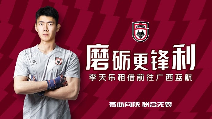 經(jīng)與球員本人及廣西藍(lán)航足球俱樂部友好協(xié)商并達(dá)成一致,球員李天樂即日起租借前往廣西藍(lán)航足球俱樂部,租借期至本賽季結(jié)束。
