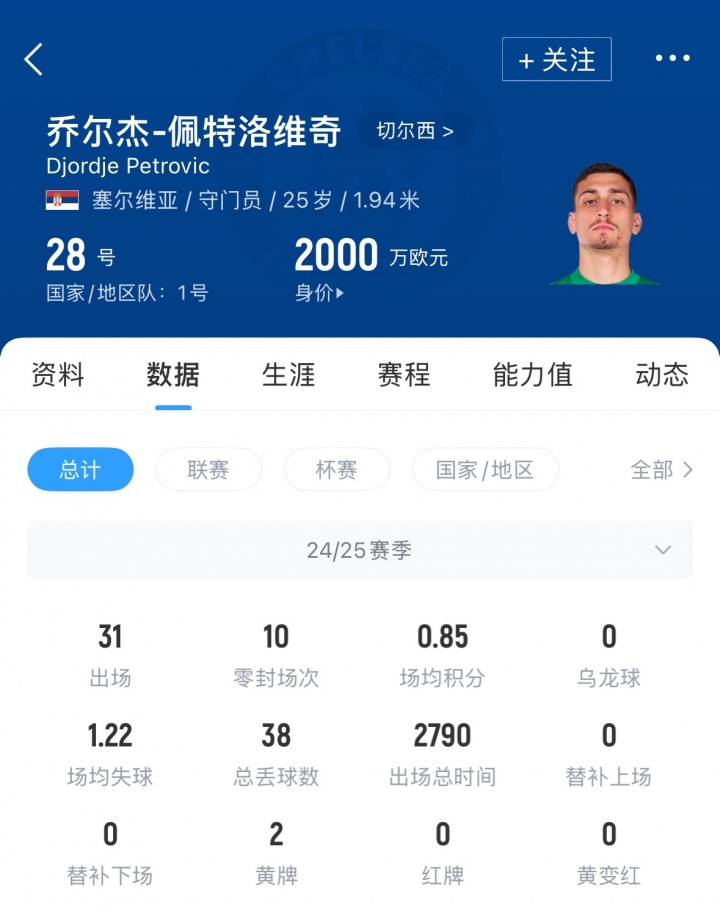 佩特洛維奇擁有23場(chǎng)英超聯(lián)賽出場(chǎng)記錄,在2024/25賽季租借至法甲斯特拉斯堡期間表現(xiàn)出色。
