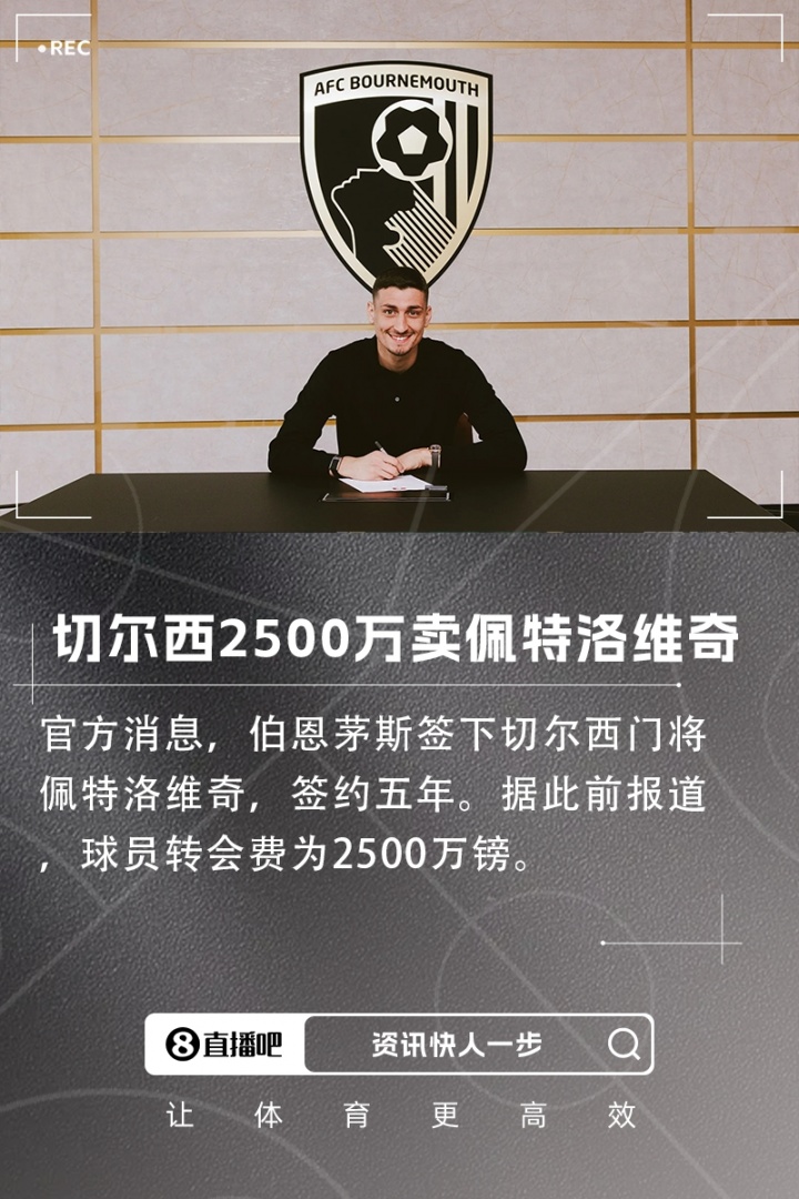 07月16日訊 官方消息,伯恩茅斯簽下切爾西門將佩特洛維奇,轉(zhuǎn)會(huì)費(fèi)2500萬(wàn)鎊(約合2887萬(wàn)歐元)。