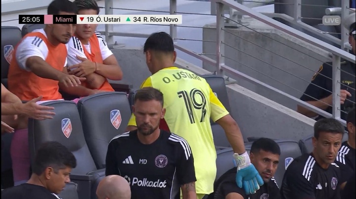 邁阿密門將烏斯塔里出擊拉傷,第25分鐘被替補(bǔ)門將諾沃替換下場(chǎng)