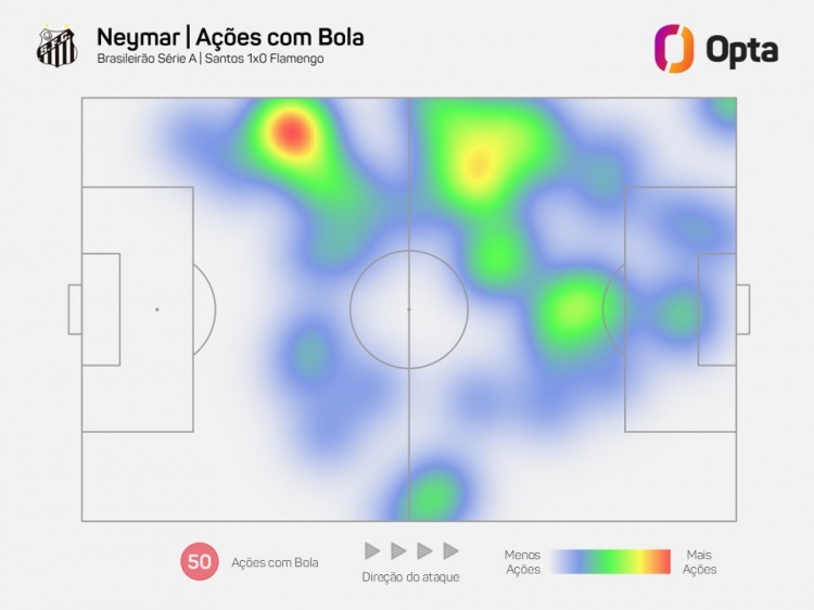 另外,內(nèi)馬爾此役觸球50次,桑托斯隊內(nèi)第二多。