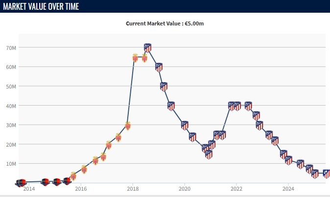 但在高價(jià)加盟馬競(jìng)之后,勒馬爾的效率直線下滑,他也頻繁受到傷病困擾,身價(jià)一路走低,從巔峰時(shí)期的7000萬歐,掉到現(xiàn)在的500萬。