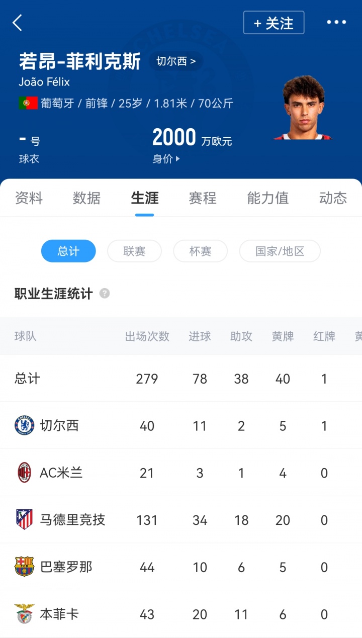 據(jù)此前報道,菲利克斯將以3000萬歐元固定+2000萬歐元浮動的轉(zhuǎn)會費加盟利雅得勝利,切爾西希望收回在球員身上的投資。目前菲利克斯德轉(zhuǎn)身價為2000萬歐元,這位葡萄牙昔日金童現(xiàn)年25歲。