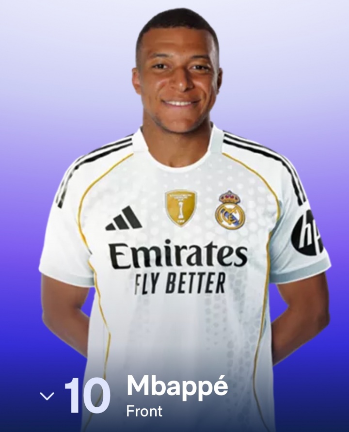 07月30日訊 皇馬官方更新球員號碼,姆巴佩改穿10號球衣。