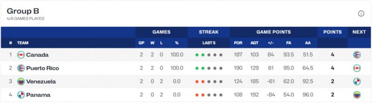 小組賽最后一輪,加拿大男籃和波多黎各男籃將正面對決,爭奪小組第一。兩隊都有NBA球員,加拿大擁有萊昂納德-米勒和凱肖恩-喬治,波多黎各有阿爾瓦拉多。