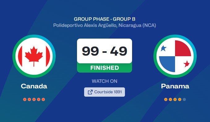 8月24日訊 今天結(jié)束的一場男籃美洲杯小組賽,加拿大男籃99比49大勝巴拿馬男籃50分。