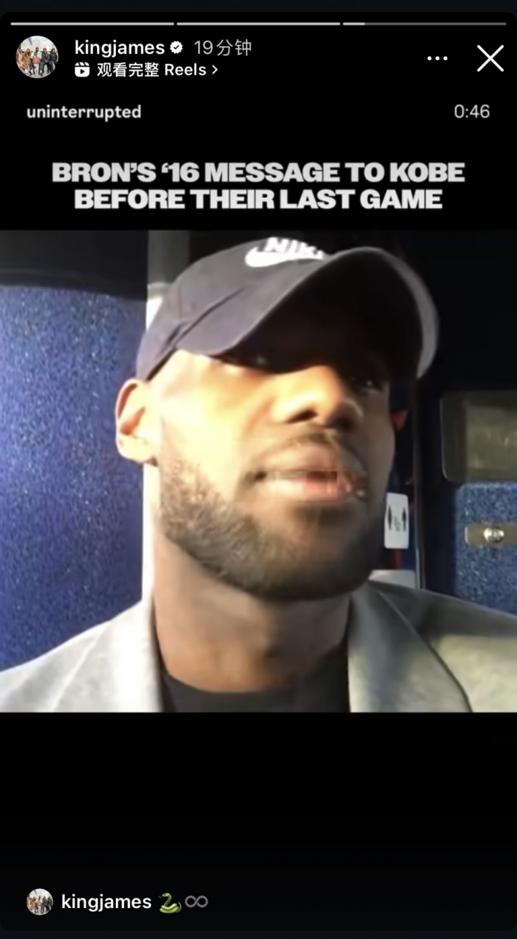 8月25日訊 湖人前鋒詹姆斯更新Instagram Story動態(tài)。