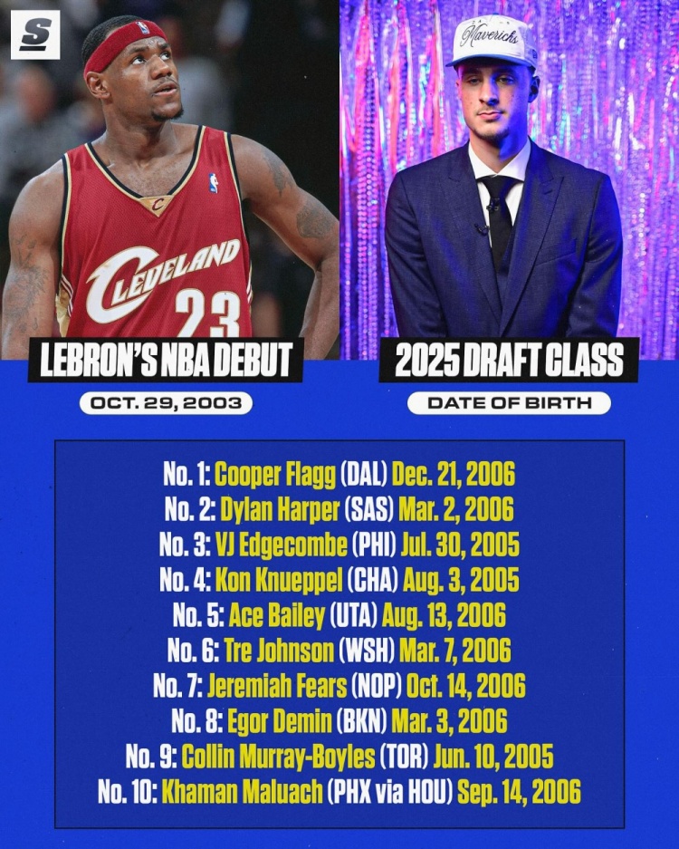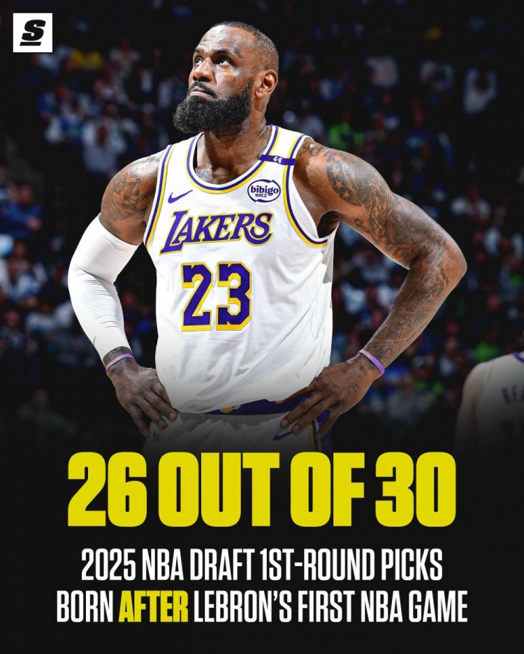 6月27日訊 作為2003年的選秀狀元,詹姆斯在當(dāng)?shù)貢r間2003年10月29日迎來了他的NBA首秀。而值得一提的是,今年首輪秀中有26人的出生時間晚于詹姆斯的NBA首秀日。