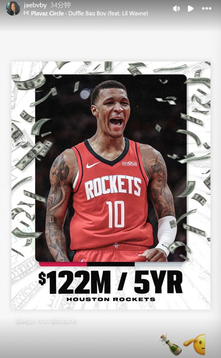 6月30日訊 據(jù)ESPN名記Shams報道,小賈巴里-史密斯計劃和火箭簽下5年1.22億的提前續(xù)約合同。