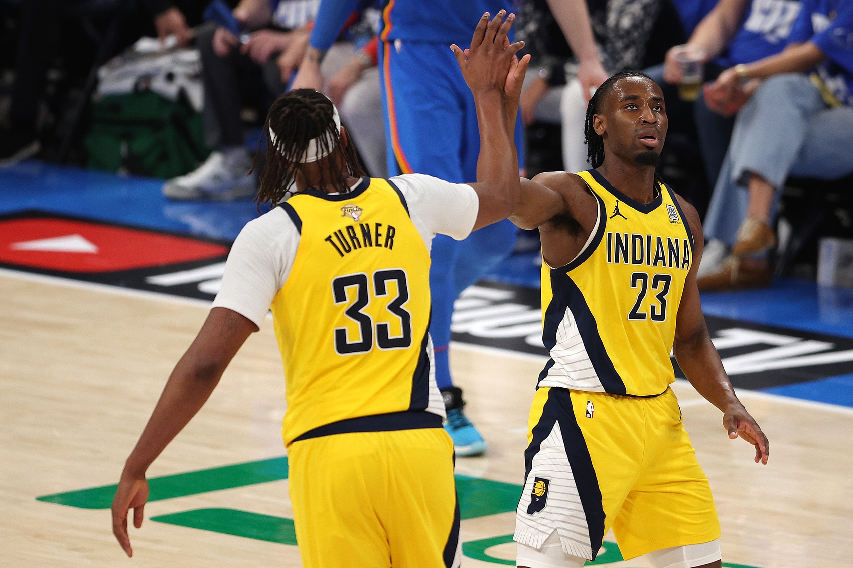或者步行者隊(duì)可以押注自己,選擇進(jìn)入奢侈稅區(qū)間,并完整保持剛剛進(jìn)入總決賽的核心陣容。他們可以在2026年整體實(shí)力下滑的東部聯(lián)盟中努力保持競(jìng)爭(zhēng)力,然后在接下來(lái)的賽季以健康的哈利伯頓和年輕的核心陣容回歸。