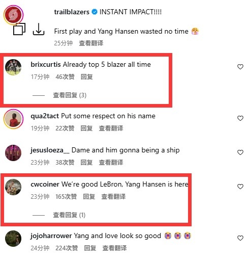 開拓者隊官方賬號發(fā)文:“立竿見影的影響?。?!首次登場,楊瀚森沒有浪費任何時間?!?/p>