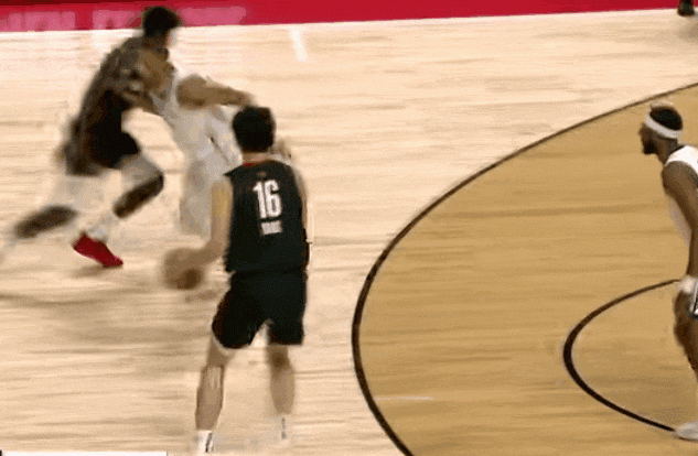 然后是指導(dǎo)教學(xué)的高低位連線,第三次助攻保送上籃:這一球明確了,他是全場視野和球商最高的球員。
