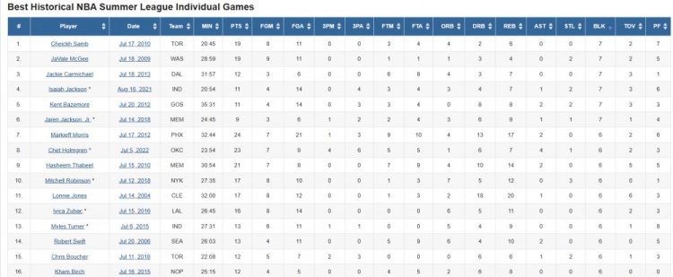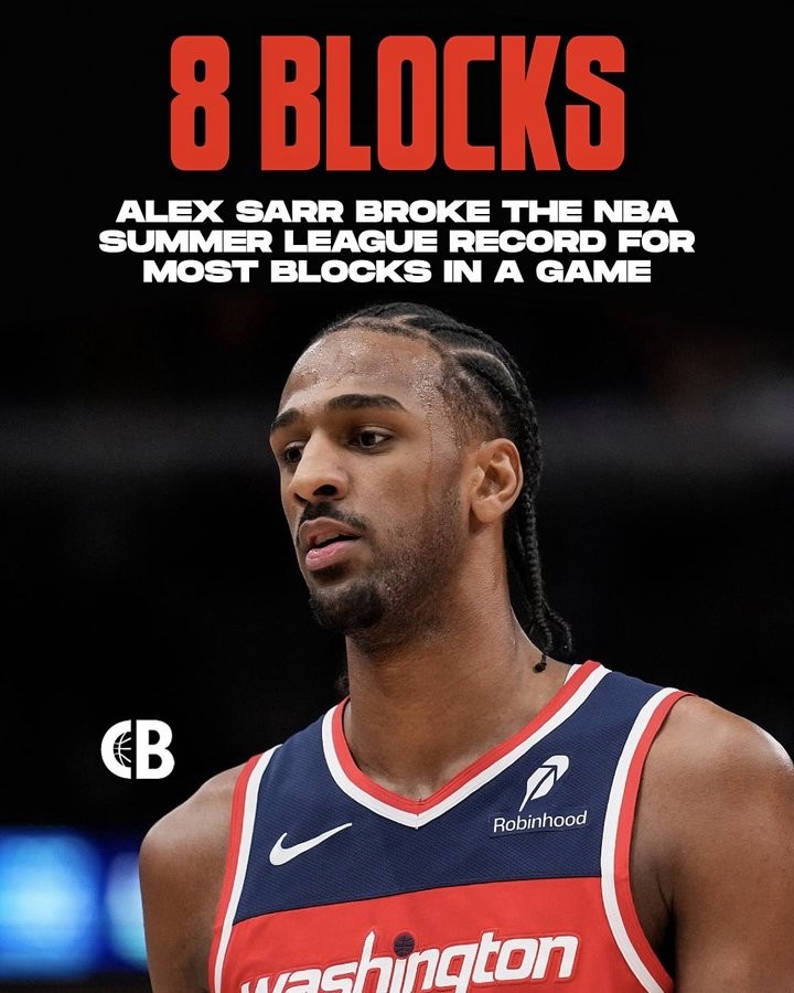 薩爾也打破了夏季聯(lián)賽單場蓋帽數(shù)紀(jì)錄,此前夏聯(lián)單場蓋帽最多是7個。