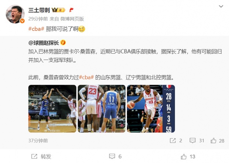 之后媒體人@三土帶刺 在社媒上曬出了桑普森昔日在CBA賽場上對陣廣廈的圖片。
