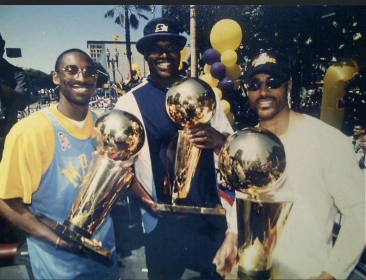 “哦,你們想包夾我?那我就把球傳出去投三分。這就是我們湖人贏得所有冠軍的方式。讓我打,讓科比打,然后傳球給??怂梗ㄏ聢D最右)或布萊恩-肖,”奧尼爾說。