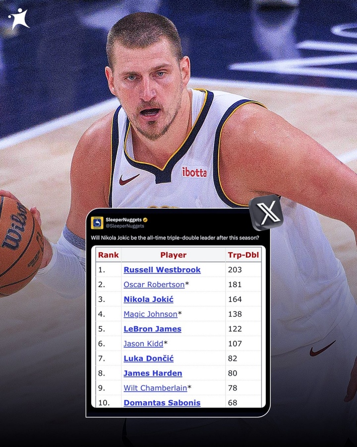 08月07日訊 掘金媒體SleeperNuggets更新動(dòng)態(tài)發(fā)問(wèn):“約基奇會(huì)在新賽季(2025-26賽季)結(jié)束之后成為NBA歷史三雙王嗎?”