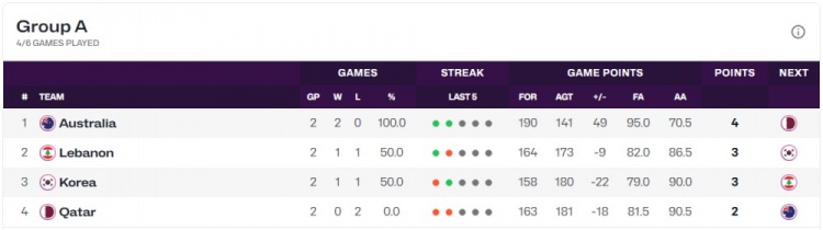 韓國男籃目前1勝1負,排名小組第3,小組賽最后一場他們將和黎巴嫩男籃正面對決。