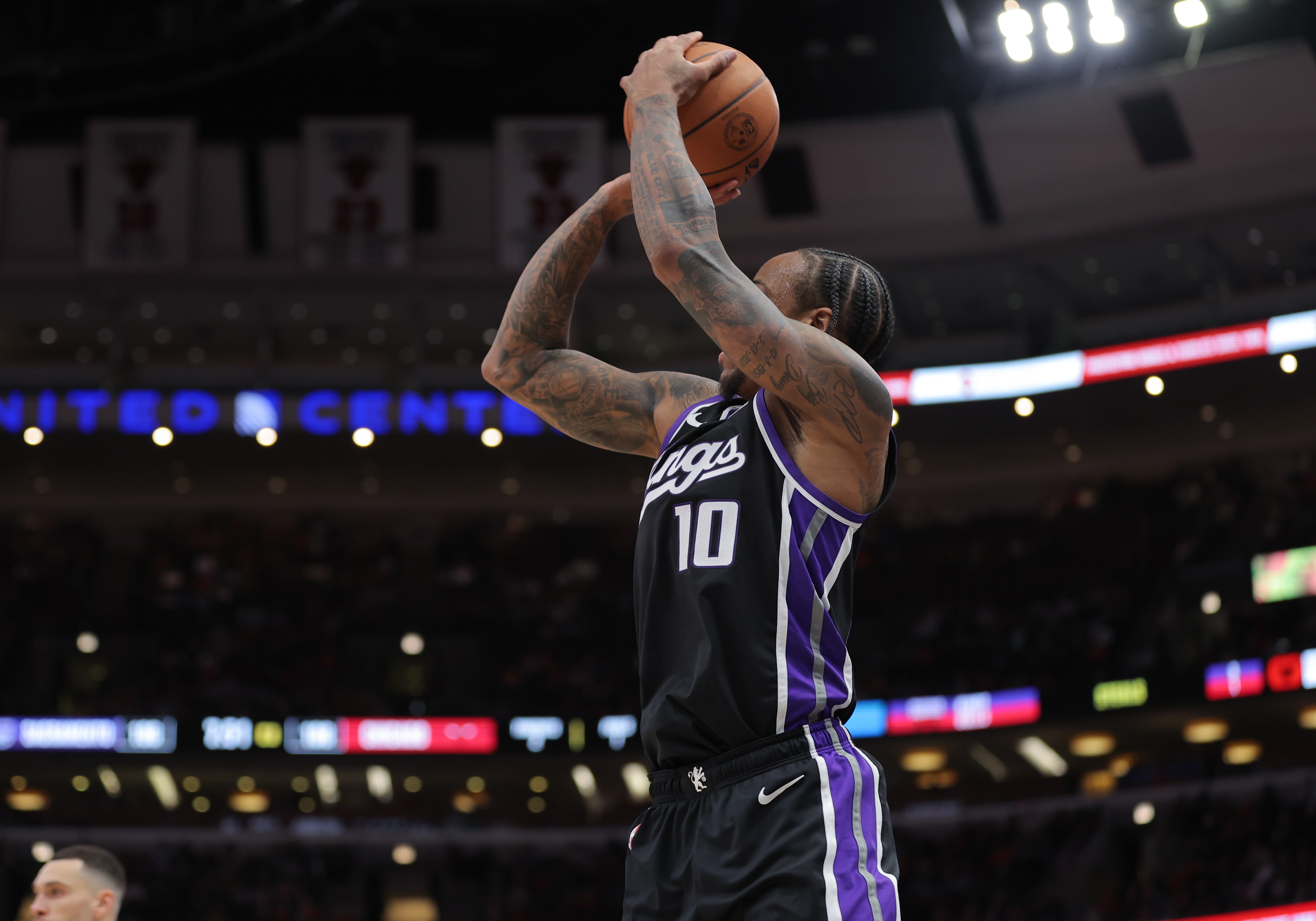 1、德羅贊 640記中投命中率45.8% 84記三分命中率32.8%
