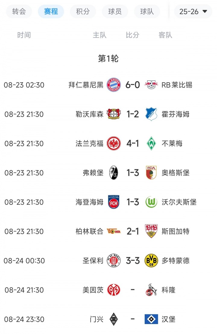 德甲首輪戰(zhàn)罷多場,拜仁6-0大勝勁旅萊比錫,幾乎鎖定首輪榜首。反觀其他強隊,翻車一大堆。