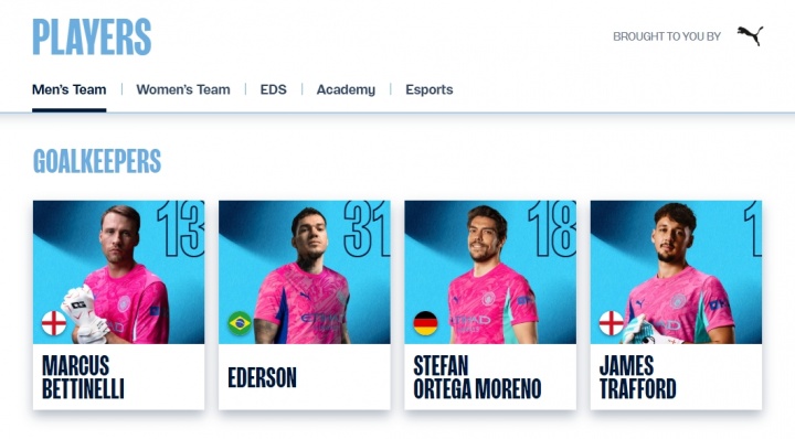 目前曼城一線隊(duì)中注冊(cè)的門將有4人,分別是貝蒂內(nèi)利、埃德森、奧爾特加和特拉福德。