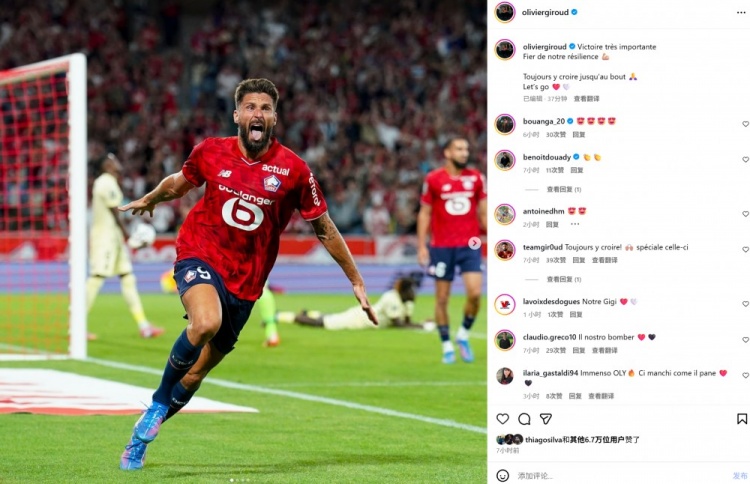 8月25日訊 在本輪法甲,里爾1-0擊敗摩納哥,38歲吉魯上演補(bǔ)時(shí)絕殺,連續(xù)兩輪進(jìn)球。