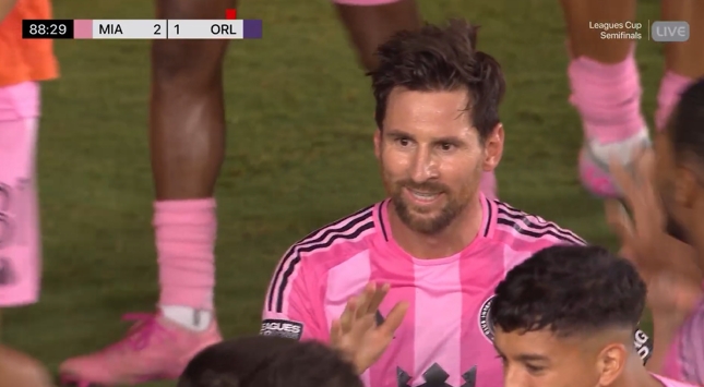 聯(lián)盟杯半決賽,邁阿密國際vs奧蘭多城。梅西梅開二度后和隊(duì)友慶祝,頭發(fā)立起來了!