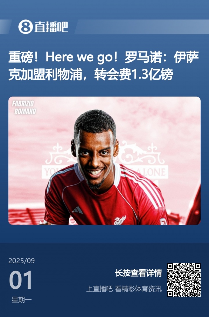 重磅!Here we go!羅馬諾:伊薩克加盟利物浦,轉(zhuǎn)會(huì)費(fèi)1.3億鎊