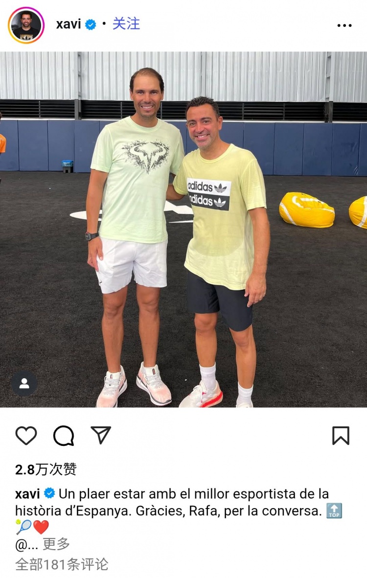 哈維寫(xiě)道:“很榮幸能與西班牙歷史上最偉大的運(yùn)動(dòng)員在一塊。謝謝你,拉法,感謝這次交流?!?/p>