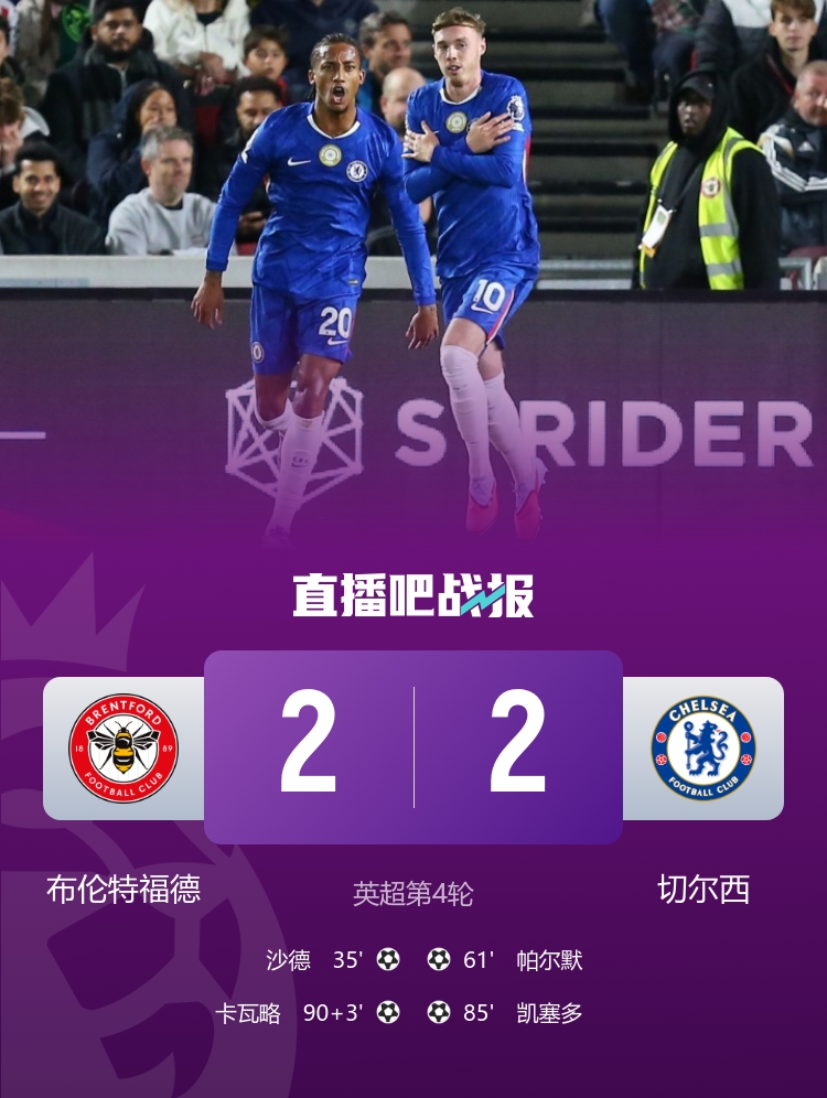 9月14日訊 英超第4輪,布倫特福德坐鎮(zhèn)主場布倫特福德社區(qū)球場迎戰(zhàn)切爾西。上半場,亨德森精彩長傳助攻沙德單刀破門。易邊再戰(zhàn),帕爾默替補(bǔ)建功后失良機(jī),加納喬替補(bǔ)首秀,凱塞多絕殺,卡瓦略補(bǔ)時(shí)再絕平。最終布倫特福德2-2切爾西。積分榜方面,切爾西8分第五,布倫特福德4分第十三。