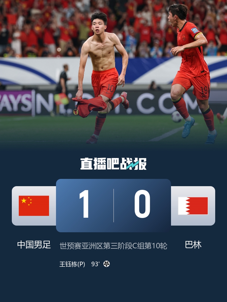 國(guó)足主場(chǎng)1-0絕殺+雙殺巴林贏(yíng)下榮譽(yù)戰(zhàn),王鈺棟處子球,國(guó)足終結(jié)世預(yù)賽4連敗,積9分位居小組倒數(shù)第二收官。