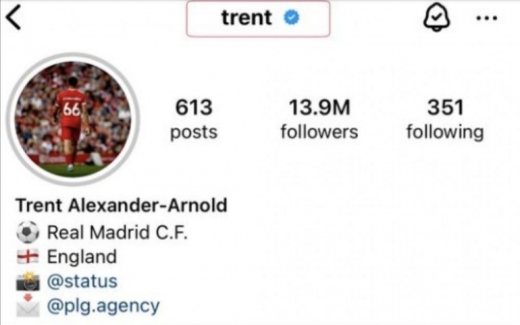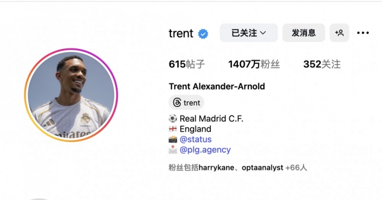 在簽約儀式和亮相發(fā)布會結束后,阿諾德已將個人社交媒體頭像更換為身穿皇馬球衣的個人頭像,表達了對新東家的承諾。