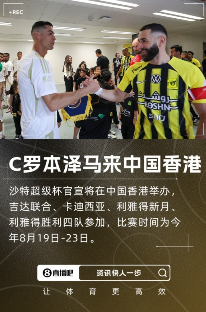 06月13日訊 官方消息,沙特超級(jí)杯將于今年8月在中國(guó)香港舉辦,吉達(dá)聯(lián)合、卡迪西亞、利雅得新月以及利雅得勝利四隊(duì)參加。 C羅、本澤馬等球星屆時(shí)將來中國(guó)香港。