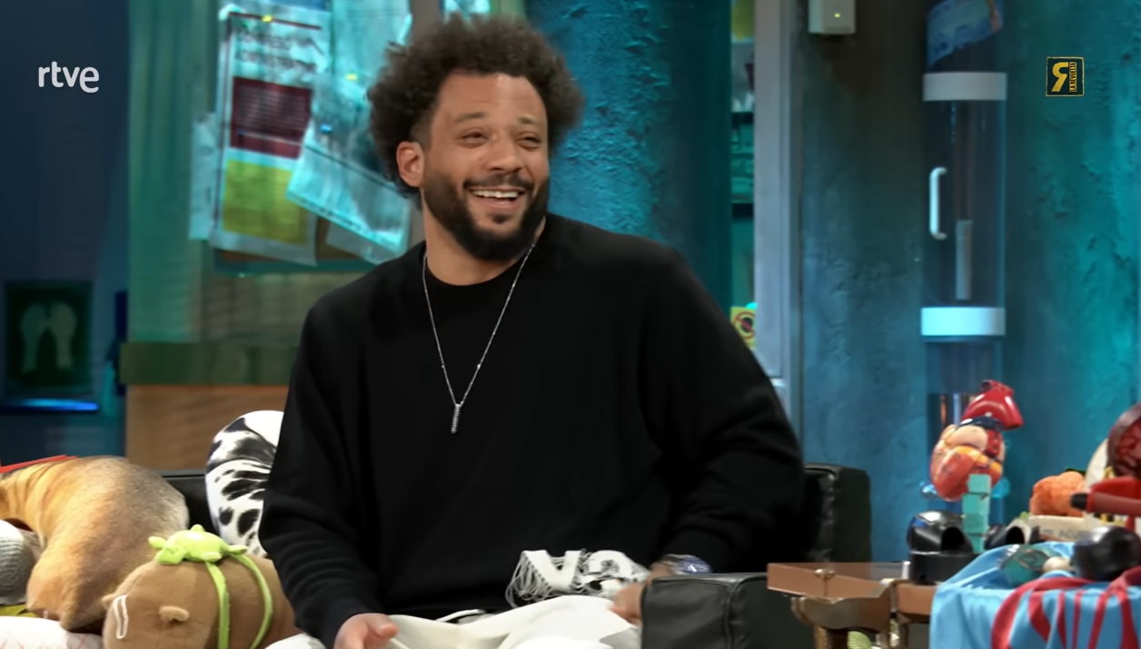 當主持人表示“梅西顯然是史上最佳球員時”,馬塞洛俏皮地以“???(Eh?)”回應,似乎持保留看法。