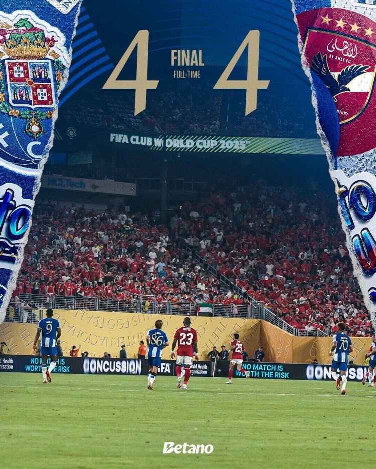 傷停補(bǔ)時6分鐘。全場比賽結(jié)束。波爾圖4-4開羅國民。