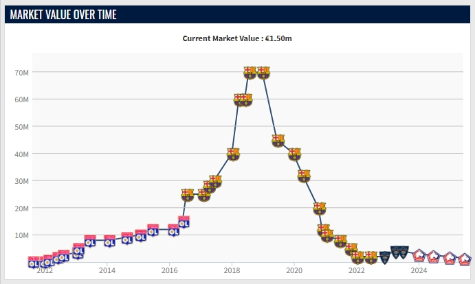烏姆蒂蒂巔峰時(shí)身價(jià)高達(dá)7000萬(wàn)歐,如今只剩150萬(wàn)歐。