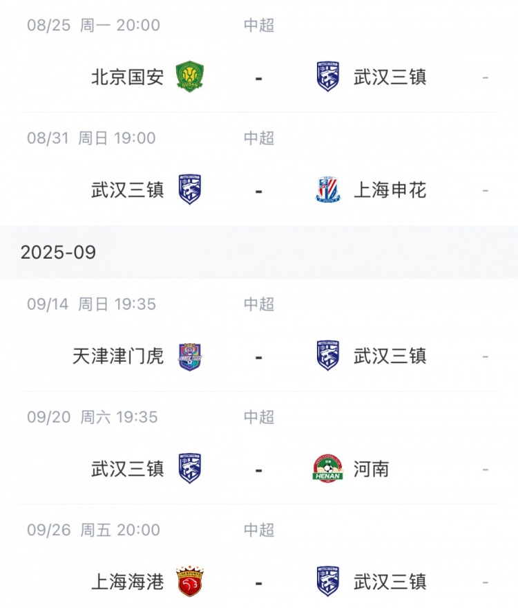 三鎮(zhèn)接下來賽程↓