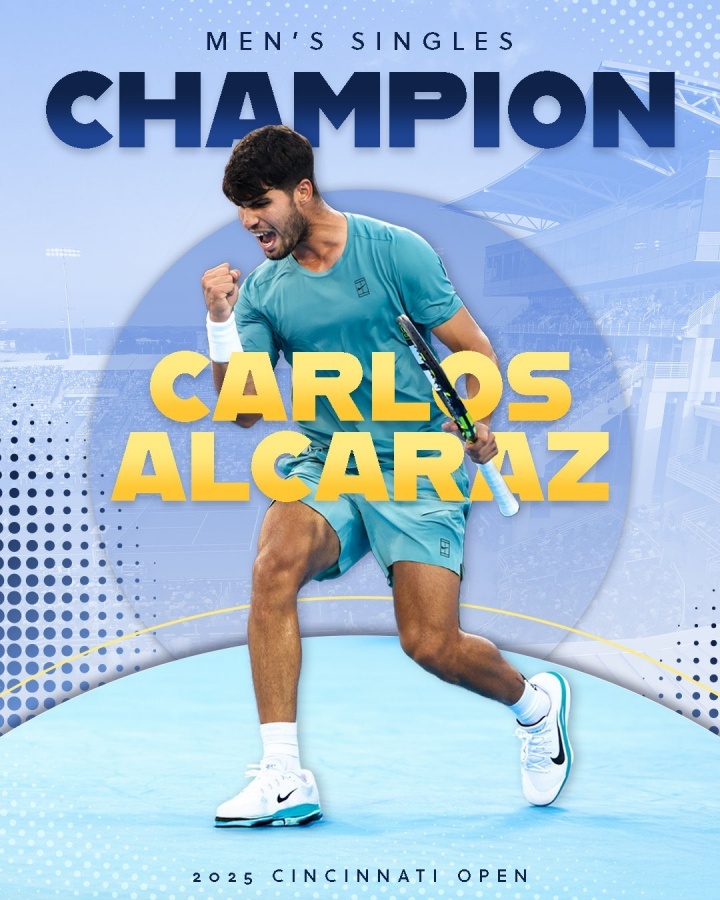 8月19日訊 ATP1000辛辛那提決賽,阿爾卡拉斯收獲辛納退賽禮奪得冠軍。