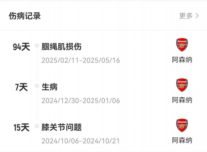 這是哈弗茨在2025年遭遇的第二次傷病,他今年2月在迪拜的一次訓(xùn)練營中遭遇腿筋撕裂,這讓他缺席了英超和歐冠的18場比賽